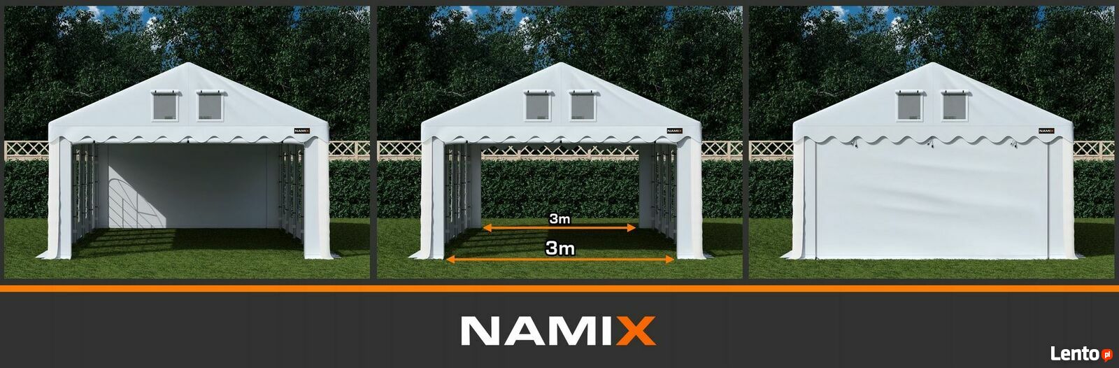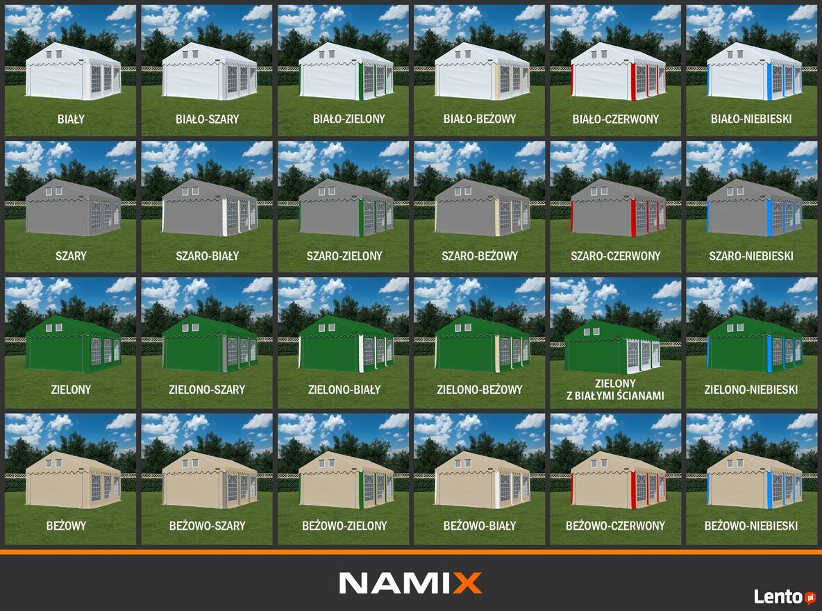 Montaż: montaż namiotu wraz z załączoną instrukcją obsługi jest prosty i intuicyjny, jednak jeśli masz ochotę możesz to zlecić naszej ekipie montażowej - w tym celu skontaktuj się z nami telefonicznie aby ustalić szczegóły.
