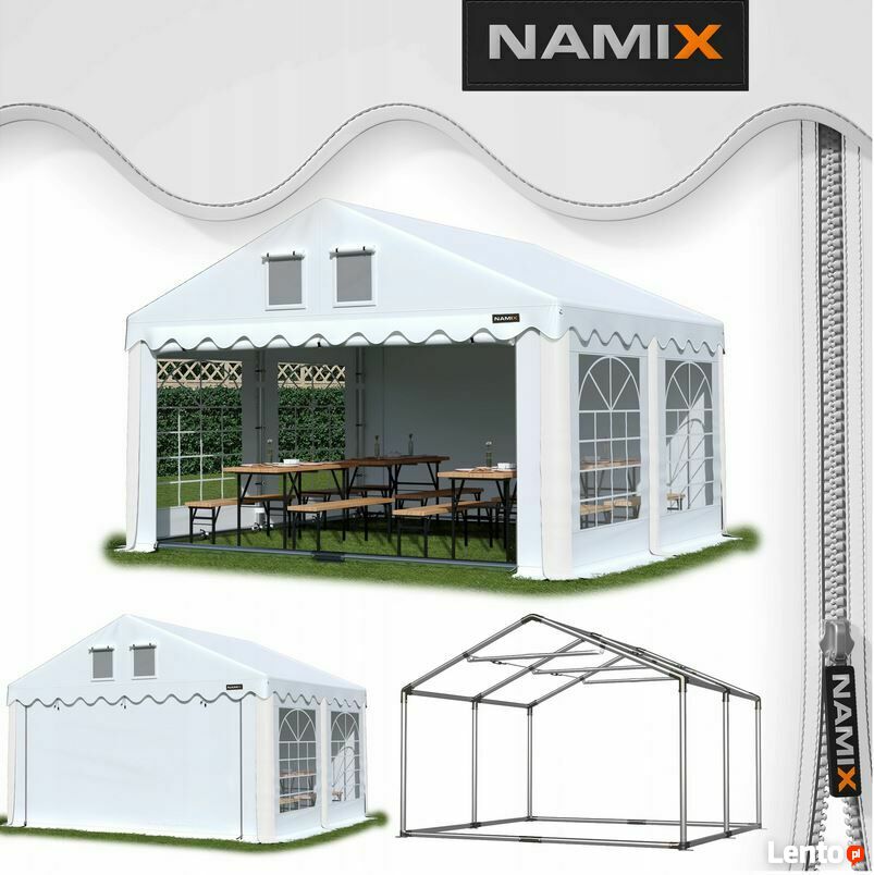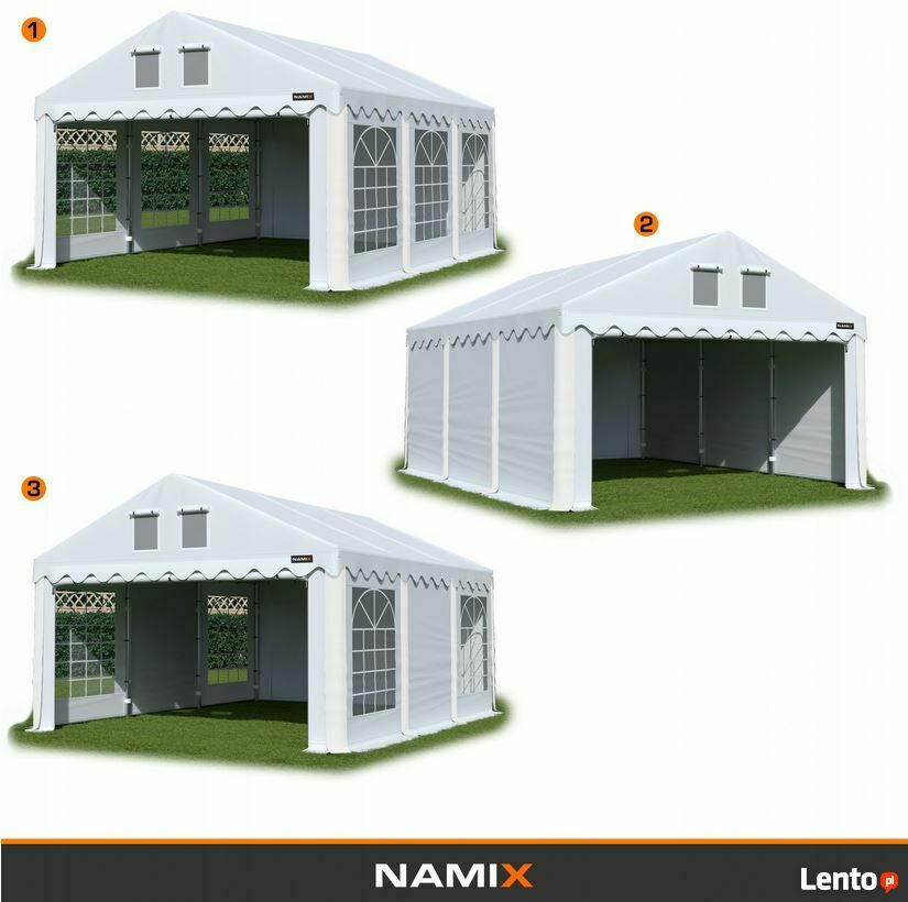 Montaż: montaż namiotu wraz z załączoną instrukcją obsługi jest prosty i intuicyjny, jednak jeśli masz ochotę możesz to zlecić naszej ekipie montażowej - w tym celu skontaktuj się z nami telefonicznie aby ustalić szczegóły.