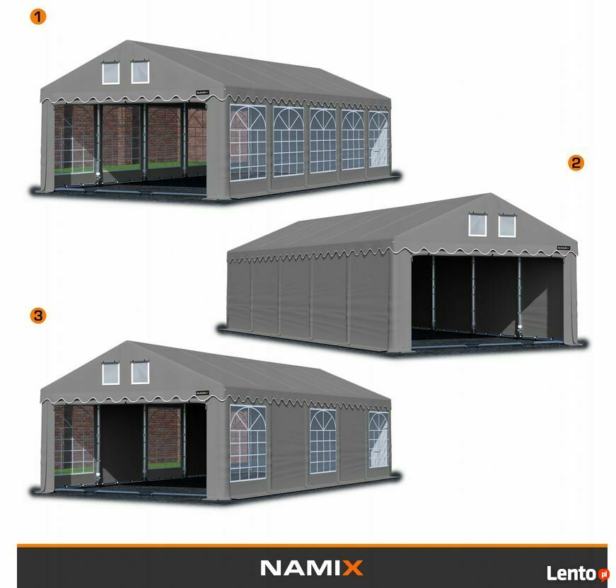Montaż: montaż namiotu wraz z załączoną instrukcją obsługi jest prosty i intuicyjny, jednak jeśli masz ochotę możesz to zlecić naszej ekipie montażowej - w tym celu skontaktuj się z nami telefonicznie aby ustalić szczegóły.
