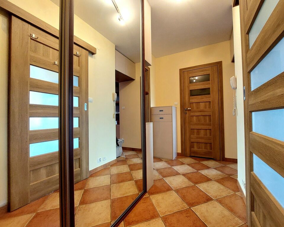 - przedpokój z pojemną szafą z lustrem i wieszakiem na okrycia