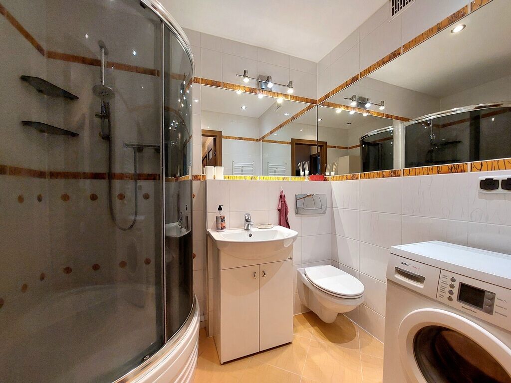 - łazienka - z dużą kabiną prysznicową, umywalką, toaletą i