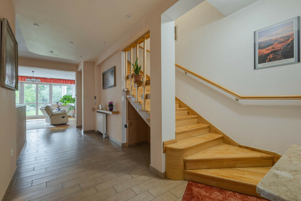 Na piętro prowadzą solidne, szerokie schody zapewniające komfort i